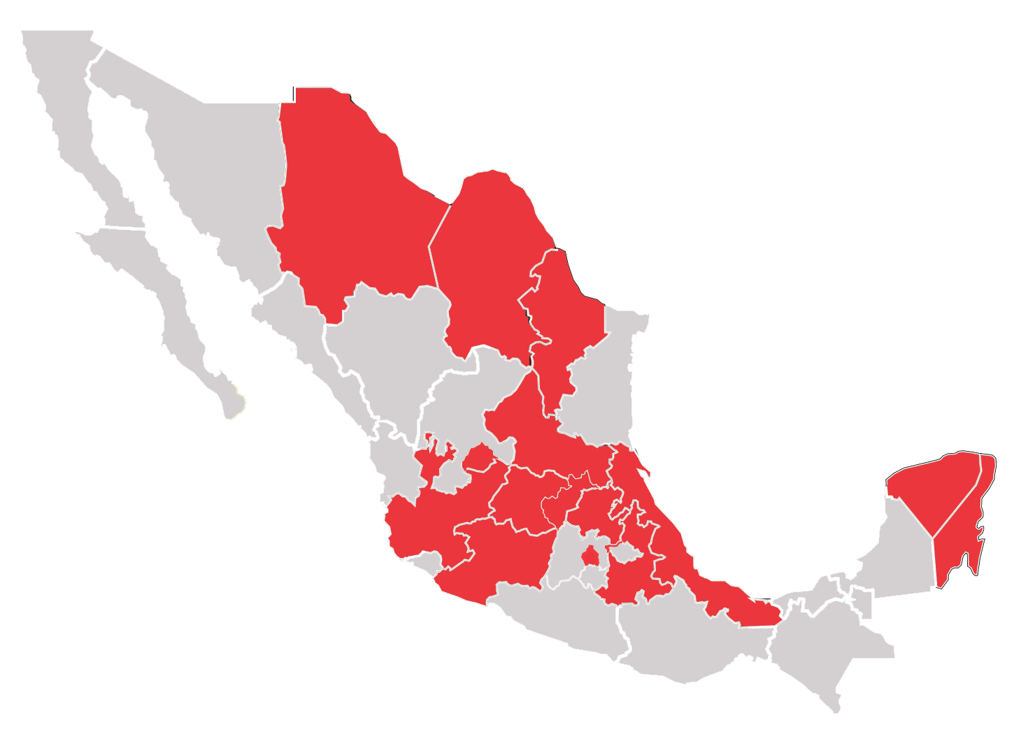 Toda la República Mexicana, las más frecuentes con centro del país (CDMX, Queretaro, Jalisco, Hidalgo, San Luis Potosí).